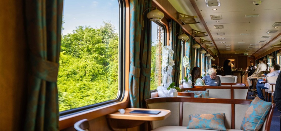 Sus tres vagones (Côte d’Azur, Étoile du Nord, L’Oriental) sirven cenas de cuatro tiempos con champán. Duración 1 noche, con vistas a Alpes. Costo aproximado €3,500 USD por persona con cena. Es un clásico de lujo gastronómico en movimiento.