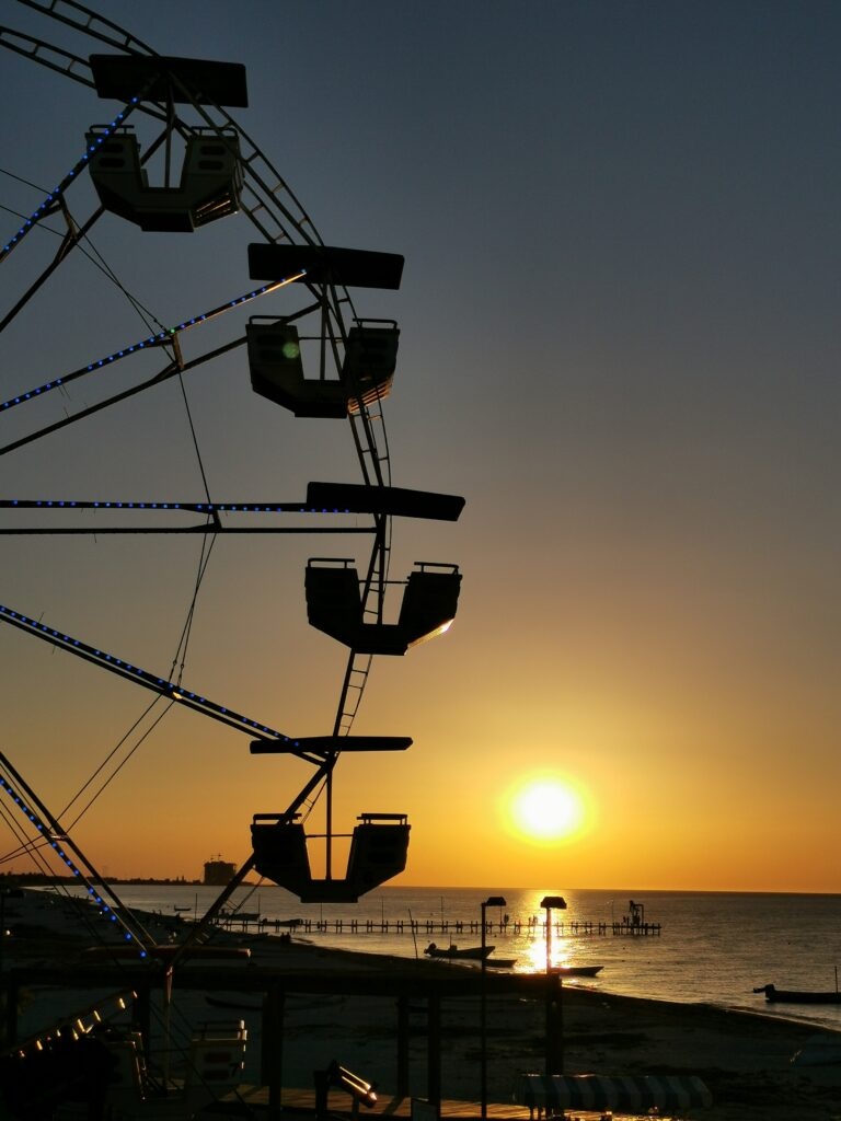 Del otro lado antes de entrar a la sección de concreto del muelle de pescadores esta el monumento con un gigantesco pez, o si lo prefieres sobre el muelle de madera con la rueda de la fortuna en la parte de atrás.