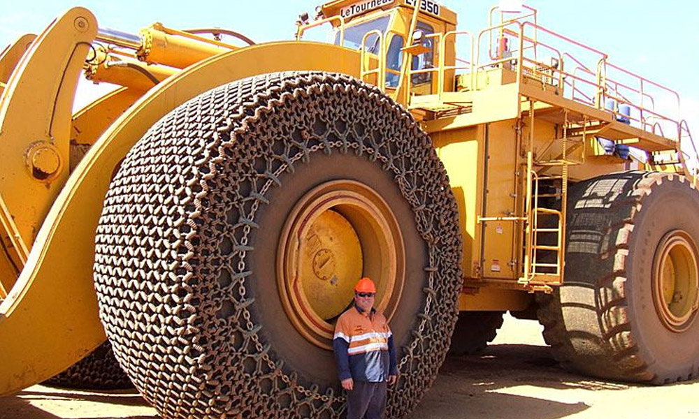 Los neumáticos son de 12 pies de diámetro, más de cuatro pies y medio de ancho, y cuestan la locura de $ 89.000 por neumático. Es un producto de Firestone y cuesta casi 360.000 dólares por un juego de neumáticos.