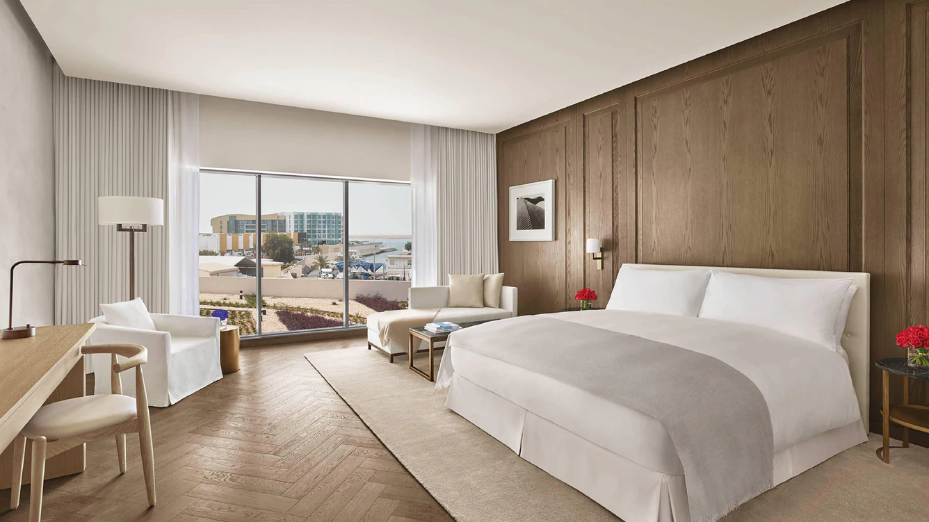 Desde el momento en que cruzan la puerta, los huéspedes se ven envueltos en la opulencia de su entorno, con vistas a la ciudad, los jardines o el Golfo al encuentro de su mirada. Considere la posibilidad de regalarse la Suite Deluxe frente al mar, con su sala de estar independiente, baño con jacuzzi y sala de medios privada a su disposición.