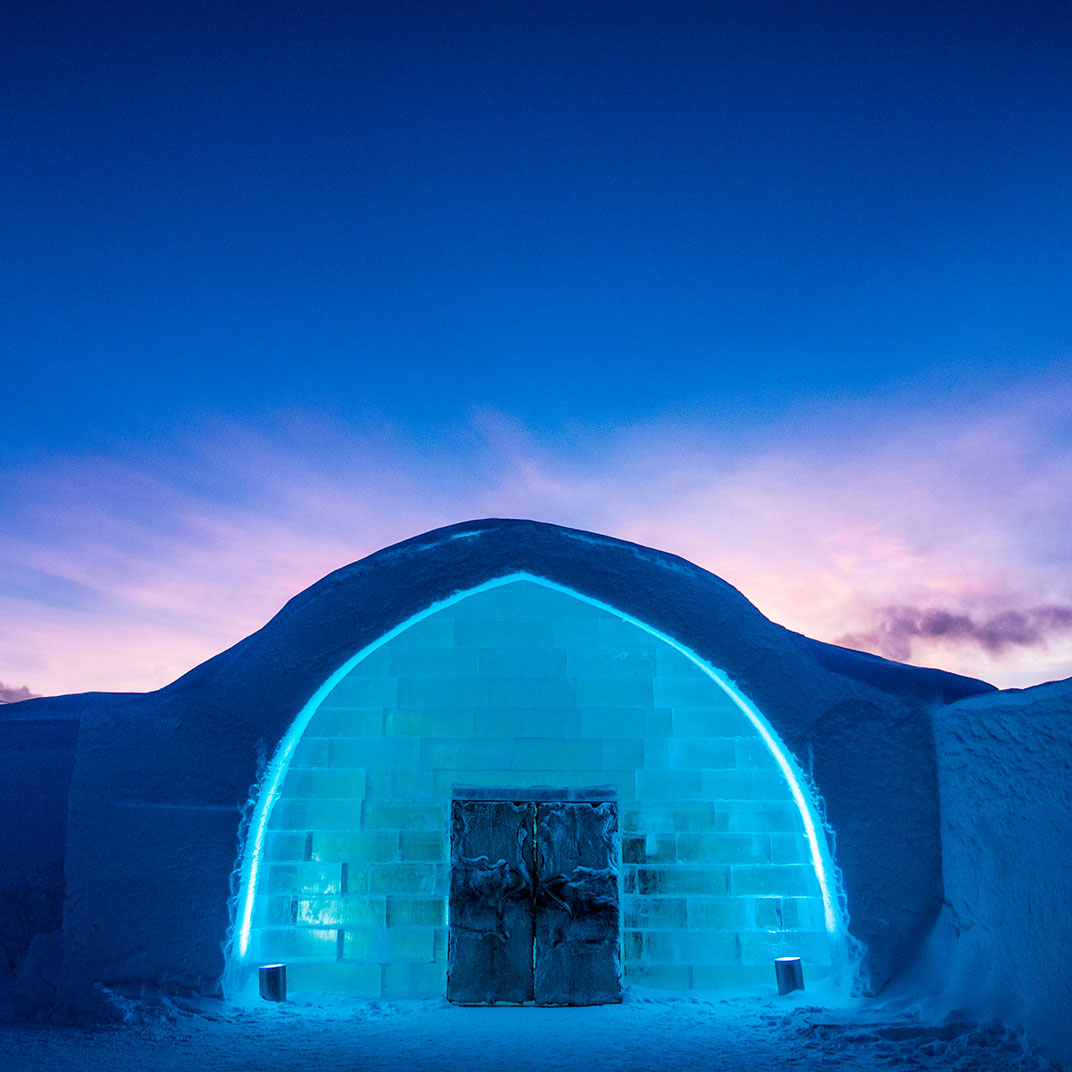 Aunque su concepto de hielo no es nuevo, su ejecución es tan extrema que raya en lo ridículo: las camas son bloques de hielo cubiertos con pieles de reno, las copas en el bar están talladas en hielo, y la temperatura interior ronda los -5°C.